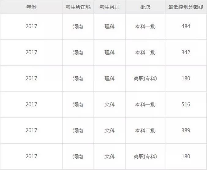 2019年河南省普通高校招生录取控制分数线
